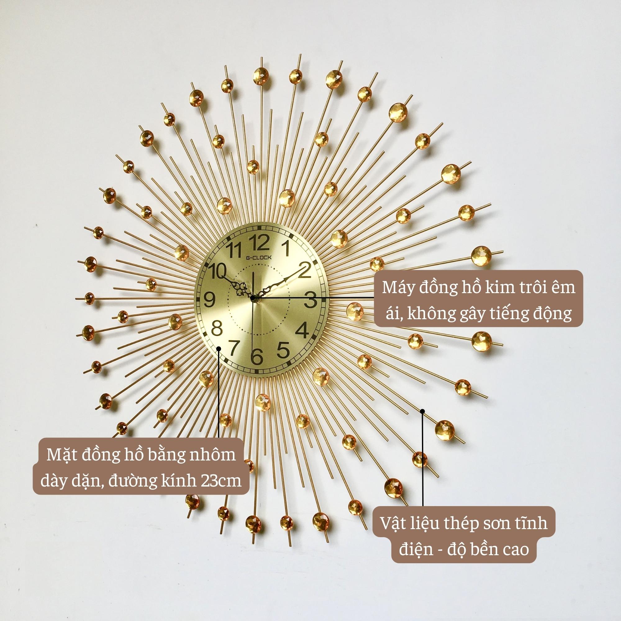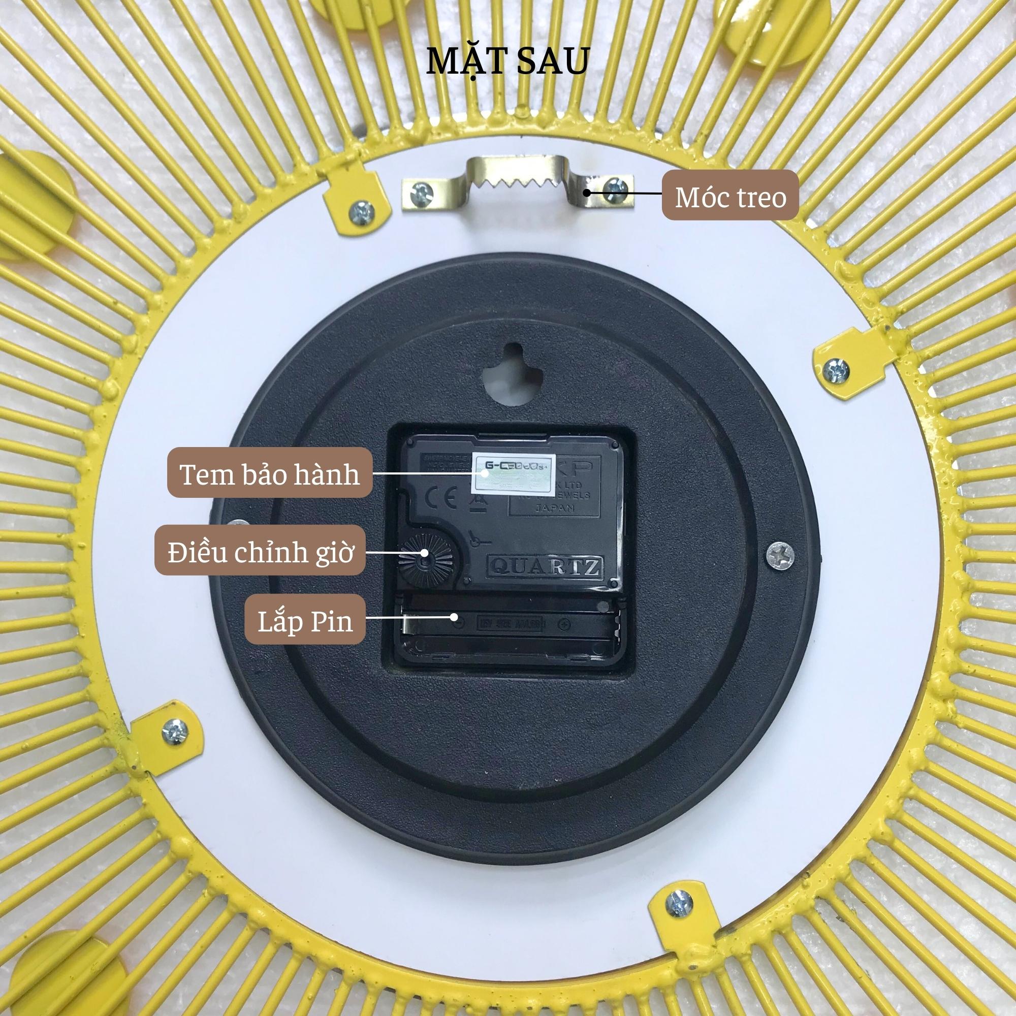 - Mặt đồng hồ: Bằng kim loại, dày dặn, đường kính 23cm