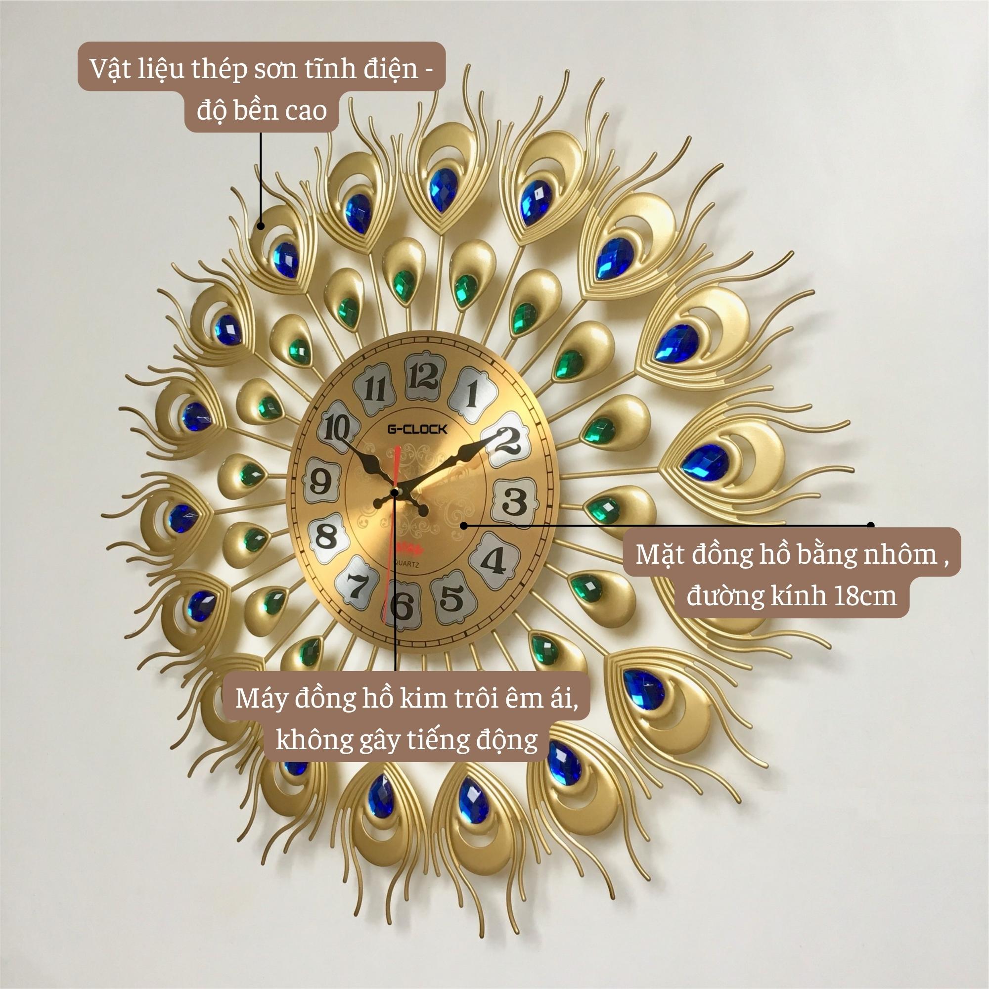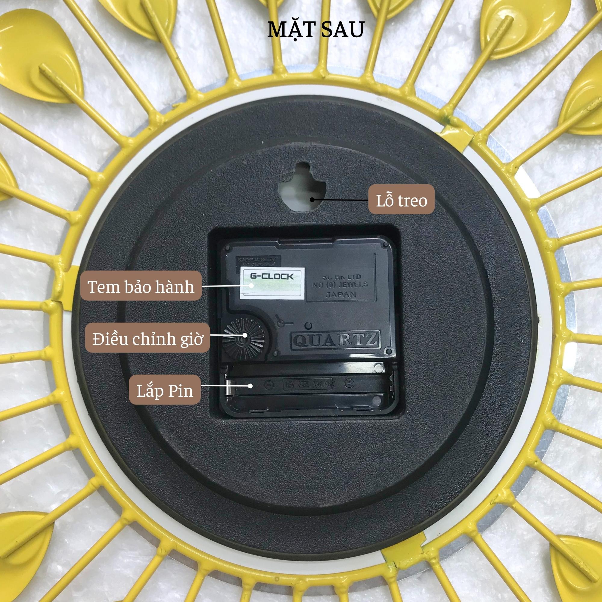 - Mặt đồng hồ: Bằng kim loại, đường kính 18cm