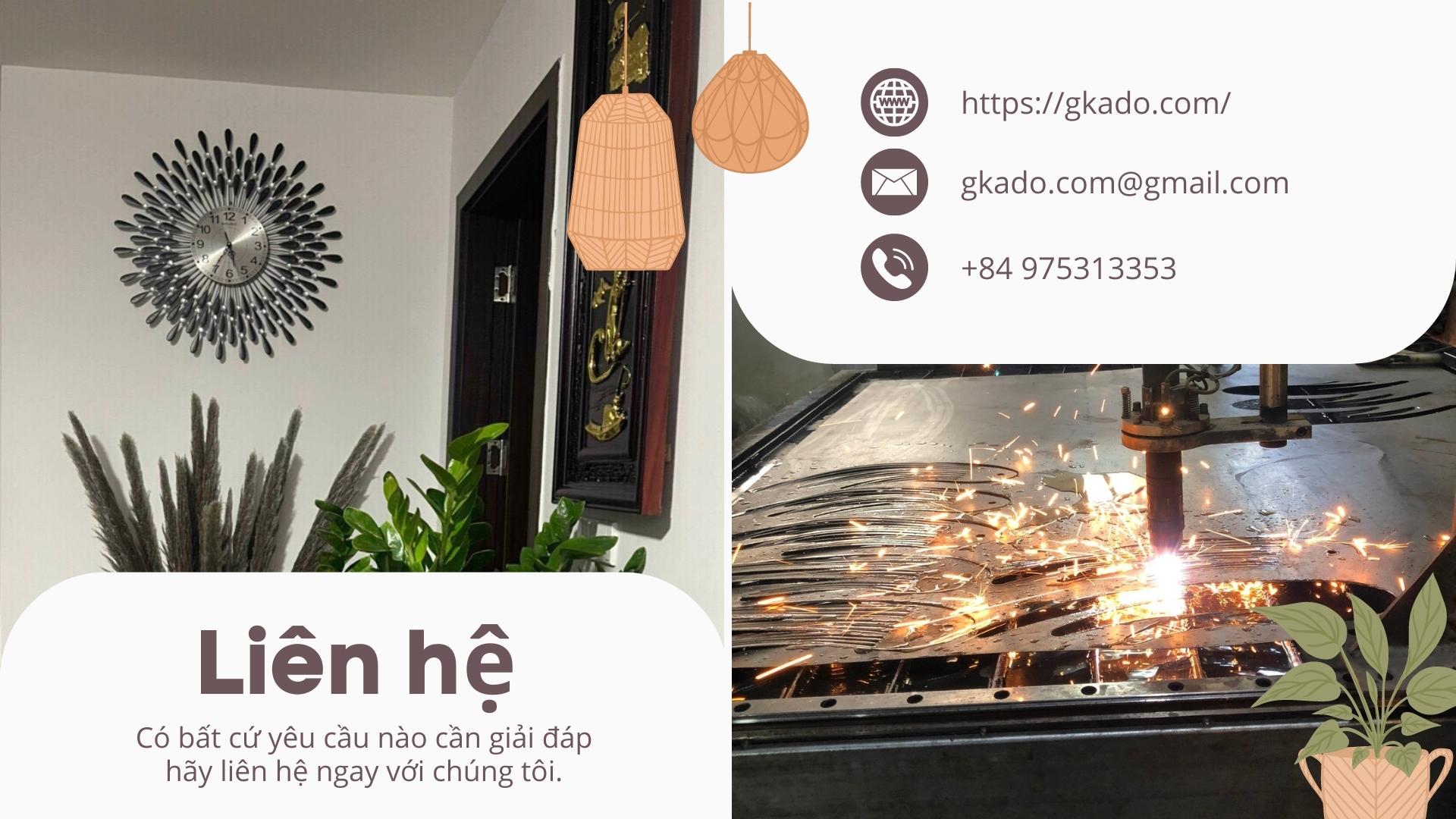 Công ty cổ phần GKADO chuyên sản xuất và phân phối sỉ/lẻ toàn quốc sản phẩm trang trí nội thất đồng hồ treo tường, tranh sắt, gương trang trí, kệ sắt treo tường trang trí.